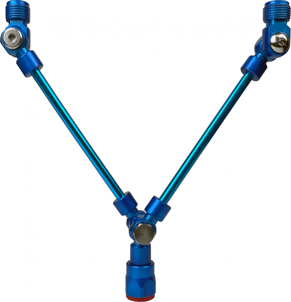 Применение этого устройства позволяет увеличить скорость окраски поверхности в 2 раза. Соплодержатель с соплом устанавливается на каждую из двух удлинительных трубок. Затем устанавливается необходимый угол разведения трубок, соответствующий ширине факела каждого сопла с учетом необходимого перекрытия.