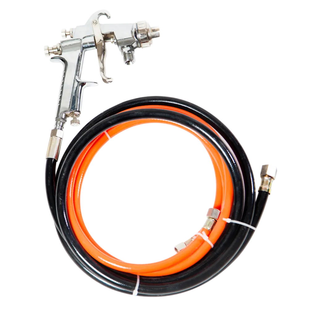 - Крепления для шланга подачи сжатого воздуха и шланга окрасочного пистолета (краскопульта).