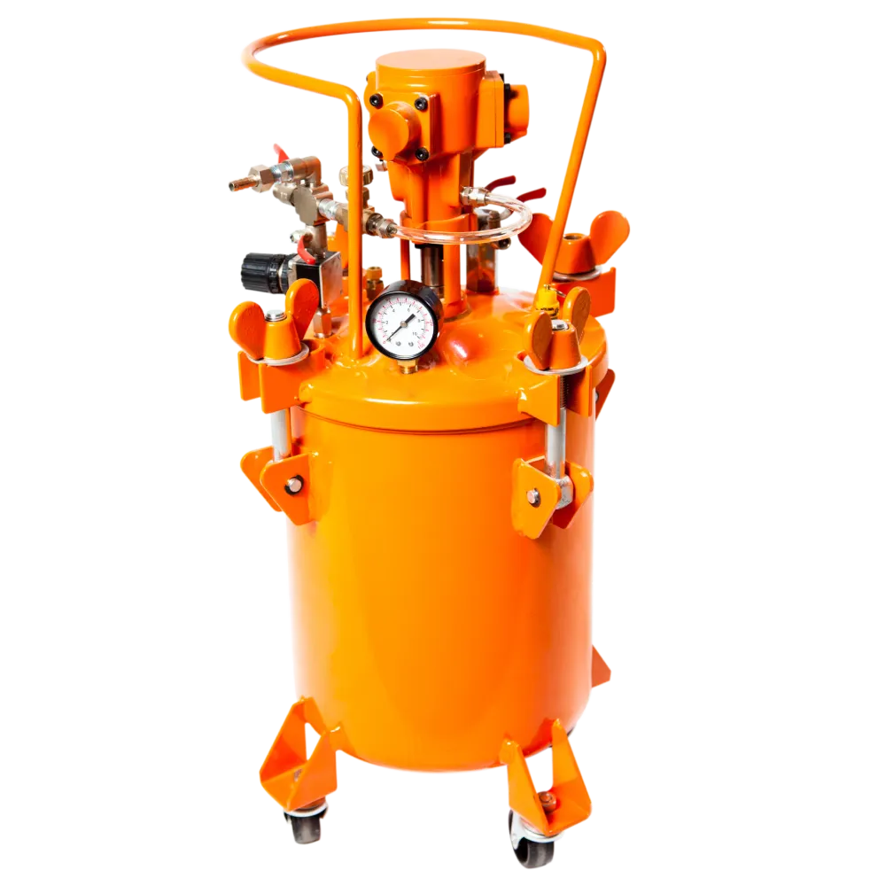 - Камера для лакокрасочного материала объёмом в 20 литров, выполненная из нержавеющей стали. Ёмкость имеет цельную конструкцию (изготовлена методом литья), что многократно увеличивает прочность на разрыв в сравнении камерами, имеющими сварные швы.
