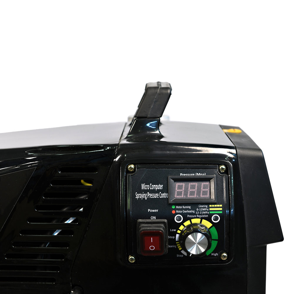 • наличие на окрасочном аппарате электронного манометра для контроля безвоздушного распыления краски;