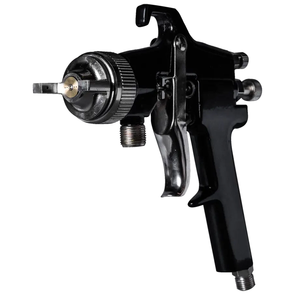 Краскораспылитель включается в работу нажатием на курок. При нажатии на курок 10 перемещается воздушный клапан 9 и открывается воздушный канал в корпусе, по которому сжатый воздух подается в головку. Одновременно перемещается игла 4 и открывает отверстие сопла 3 для выхода шпаклевки из распылителя. На выходе из сопла шпаклевка подхватывается, дробится на мельчайшие частицы сжатым воздухом и напыляется на обрабатываемую поверхность. Конструкция головки предусматривает изменение кольцевого зазора между головкой и соплом, что позволяет подбирать оптимальный режим распыления. Ход иглы определяет количество выходящей из сопла шпаклевки или краски. С увеличением хода расход шпаклевки увеличивается и наоборот. Необходимый ход иглы устанавливают с помощью регулятора.