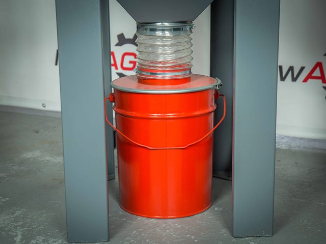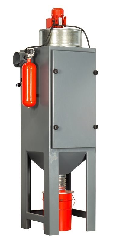 - Отработанный воздух, удаленный из рабочей зоны абразивоструйной камеры, проходя через картридж из полиэстера, очищается и выбрасывается обратно в промышленное помещение.
