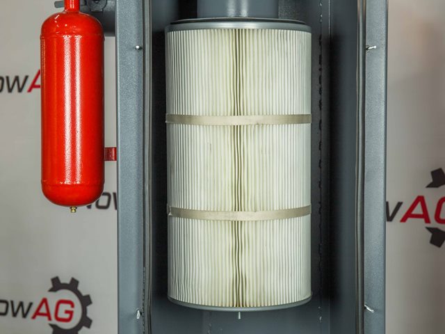 - Фильтры оснащены вентилятором, который создает необходимое разряжение, сменным картриджем, устройством обдува пыли и контейнером для сбора пыли (пылесборником).